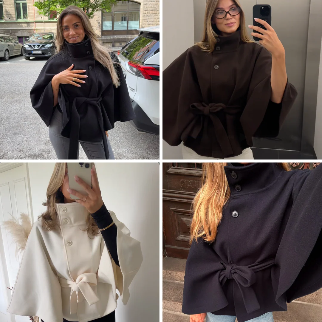 Le manteau Mya™ est l'équilibre parfait entre la sophistication d'une cape et la chaleur haut de gamme. Sa coupe unique, rehaussée par un col montant, garantit une silhouette incroyablement féminine. La ceinture réglable souligne élégamment la taille pour un style immédiat. Fabriqué en tissus luxueux, il est votre allié chic contre le froid.