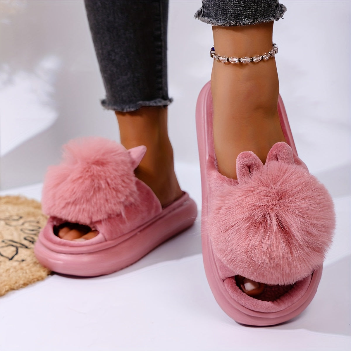 Ces chaussons ultra-doux combinent un design ludique avec un confort inégalé voor de ultieme ontspanning in huis. La fausse fourrure luxueuse et les détails adorables font de chaque pas un moment de pur bien-être, tandis que la semelle robuste assure adhérence et durabilité. Disponibles en plusieurs coloris magnifiques, il y a toujours une paire qui correspond parfaitement à votre style.