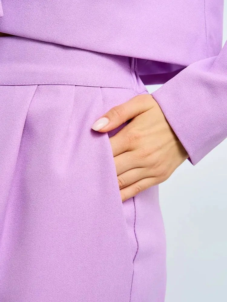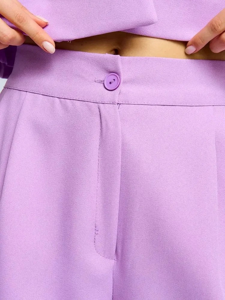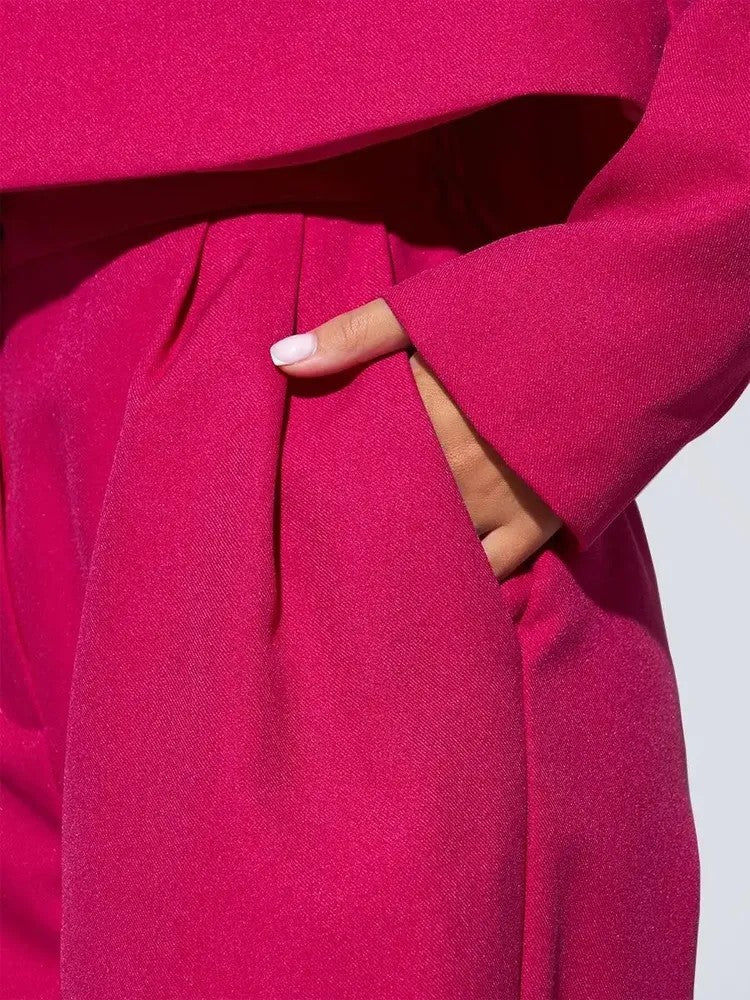 Cet ensemble raffiné combine un blazer court tendance avec un pantalon taille haute élégant pour un look puissant et moderne. La palette beige doux et les finitions de haute qualité procurent une sensation de luxe et une silhouette chic sans effort. Que ce soit pour un rendez-vous professionnel ou une soirée, cet ensemble vous permet de rayonner d'une assurance totale.